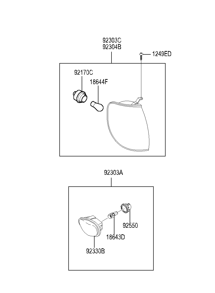 KIA 92304M3100 LAMP ASSY FR COMBI RH Image Reference: 92304B